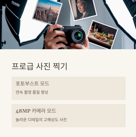 | 48MP 모드 | 상황에 맞는 모드 선택 |