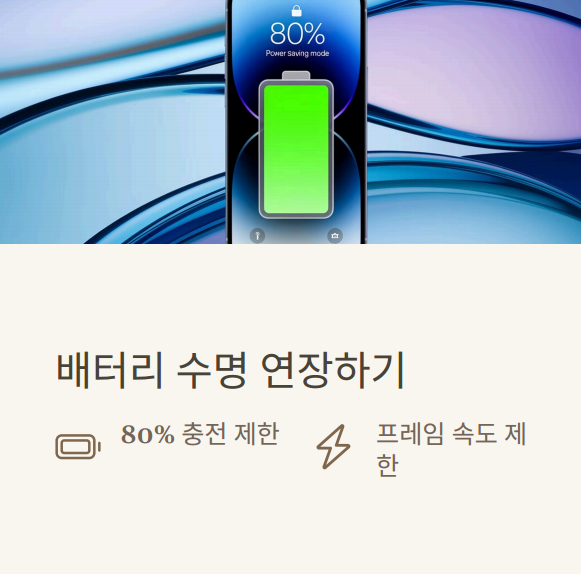 아이폰 15 프로는 배터리 관리에 있어서도 뛰어난 기능을 제공해요. 배터리 수명을 연장하기 위해 80% 충전 제한 기능을 활용할 수 있어요. 설정 > 배터리 > 배터리 상태 및 충전으로 들어가서 충전 최적화를 선택하고 80% 제한을 설정하면 돼요.