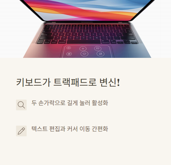 텍스트 편집을 쉽게 할 수 있는 숨겨진 기능이 있어요. 키보드의 스페이스바를 길게 누르면 키보드 전체가 트랙패드로 변환되어 텍스트 사이를 쉽게 이동할 수 있어요. 손가락을 슬라이드하여 삽입 지점을 이동할 수 있죠.