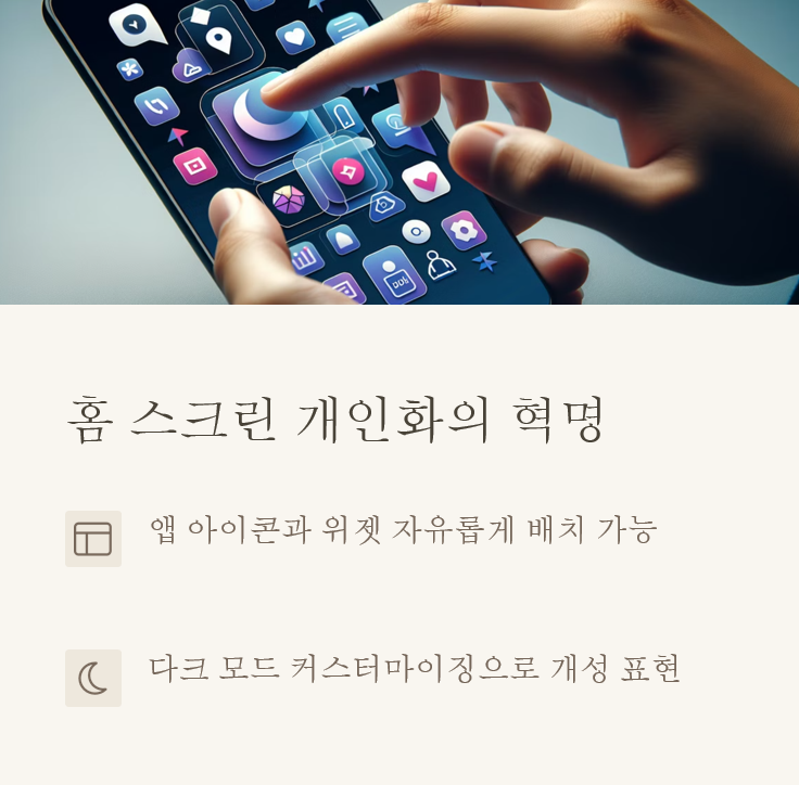 | 홈스크린 커스터마이징 옵션 | 기능 설명 | 사용자 이점 |
