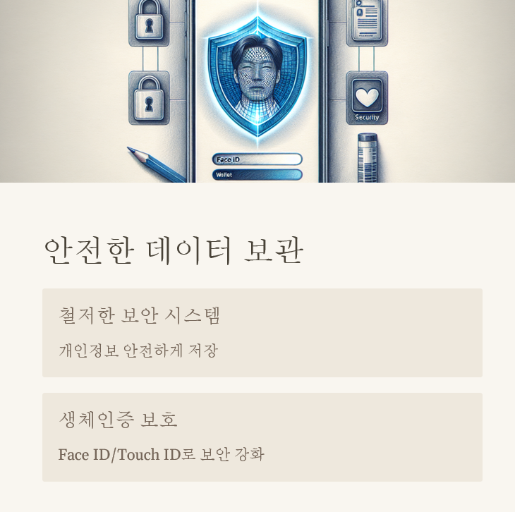 아이폰 월렛은 보안성도 뛰어나요. 추가된 카드들은 사용자의 Apple 계정과 안전하게 연동되기 때문에, 가지고 있는 모든 기기에서 카드 및 패스를 추가하고 관리할 수 있죠. 추가적인 보안을 위해, 사용자의 지갑 앱 관련 데이터가 인터넷을 통해 전송될 땐 iCloud가 데이터를 암호화합니다. Apple 서버에 저장될 때도 암호화된 형식으로 보관되죠.