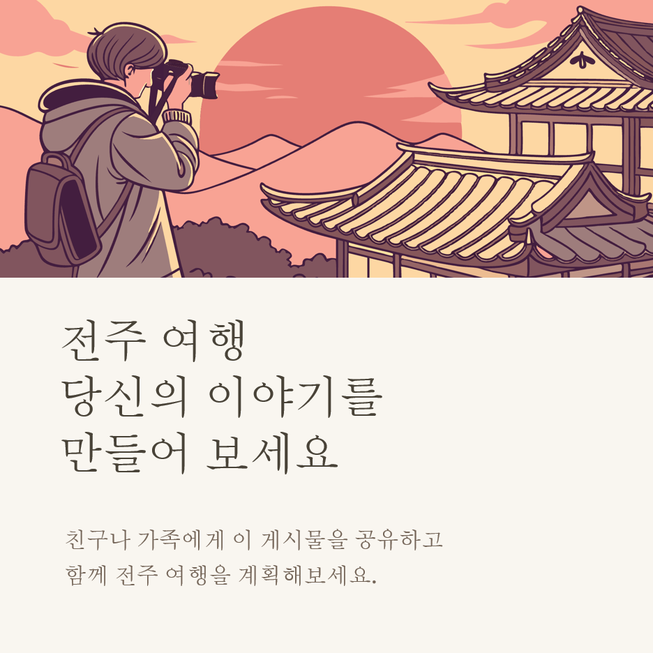 자, 여기까지 전주 여행의 모든 것을 알아봤어요. 역사와 전통, 맛있는 음식, 그리고 현대적인 문화까지 모두 즐길 수 있는 전주. 이 가이드를 참고해서 여러분만의 특별한 전주 여행을 계획해보는 건 어떨까요? 전주의 매력에 푹 빠져보세요!
