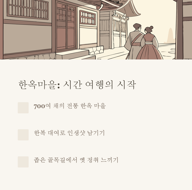 | 한옥마을 필수 코스 | 추천 포인트 |