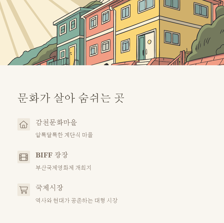 안녕하세요 여러분! 오늘은 대한민국 제2의 도시이자 해양 수도로 불리는 부산의 매력적인 여행지들을 소개해드릴게요. 부산 여행하면 떠오르는 대표 명소부터 현지인들만 아는 숨은 핫플까지, 알찬 정보로 가득 채워보았어요. 여름 휴가철이나 주말 여행으로 부산만큼 좋은 곳이 또 있을까요? 함께 떠나볼까요?