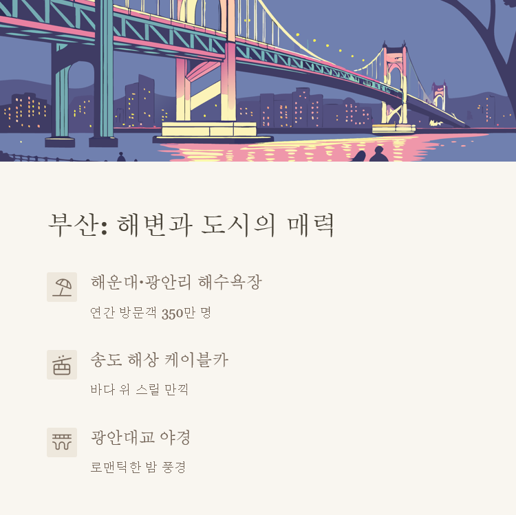 바다의 매력이 넘치는 부산