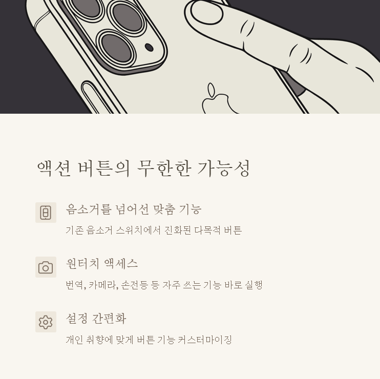 | 액션 버튼 기능 | 사용 예시 | 장점 |