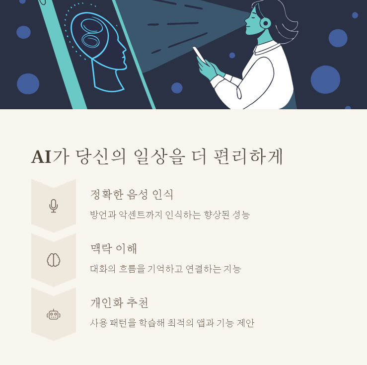 아이폰 15 프로에는 더 똑똑해진 AI 도우미가 있어요. 이제 시리가 더 자연스럽게 대화하고, 복잡한 작업도 수행할 수 있답니다. 저는 시리에게 일정 관리를 부탁하는데, 마치 진짜 비서가 있는 것 같아요. 여러분도 시리와 친구가 되어보세요!