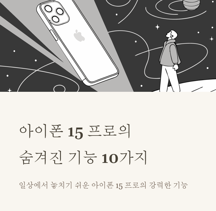 안녕하세요, 여러분! 오늘은 아이폰 15 프로의 숨겨진 기능들에 대해 알아볼 거예요. 이 기능들을 알면 여러분의 아이폰 사용이 훨씬 더 즐거워질 거예요. 제가 직접 사용해보니 정말 유용하더라고요. 함께 살펴볼까요?