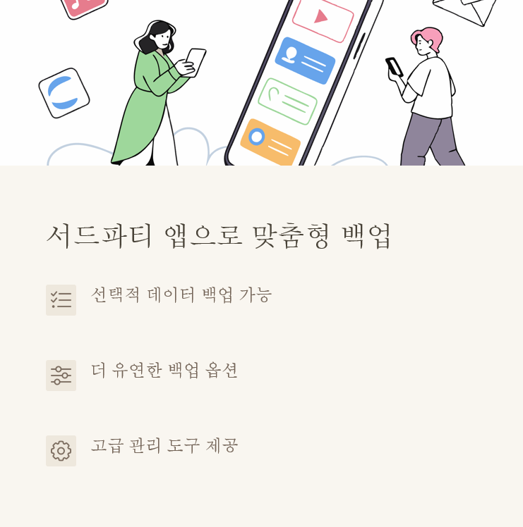 iCareFone과 같은 서드파티 앱을 사용하면 원하는 데이터만 선택적으로 백업할 수 있어요. 특히 대용량 파일을 자주 다루는 분들에게 유용해요.