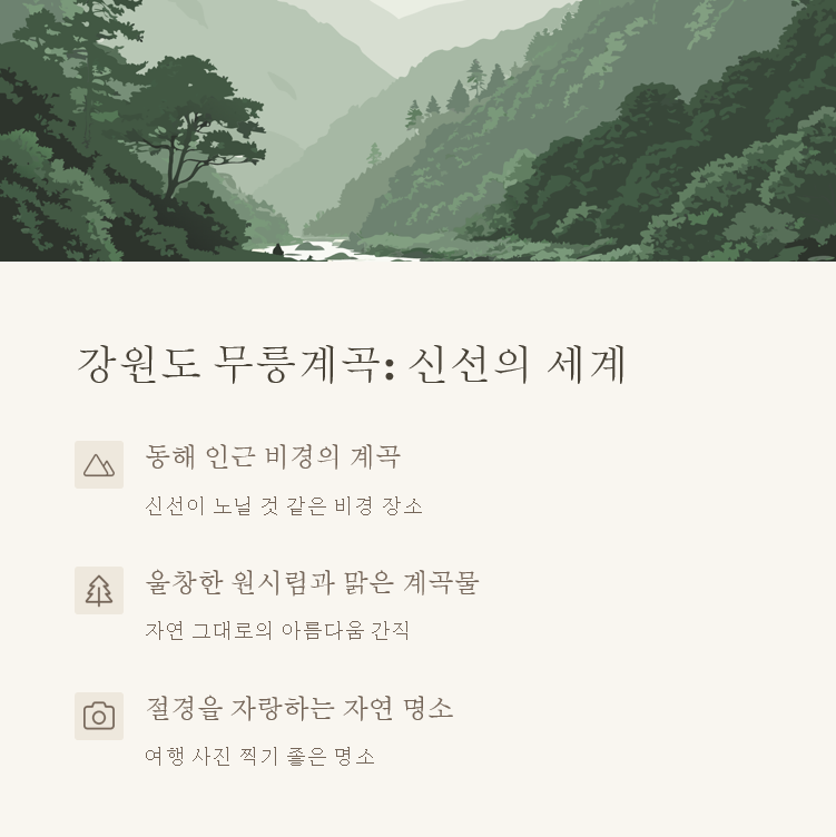 | 강원도 계곡 비교 | 무릉계곡 | 흥정계곡 | 덕풍계곡 |