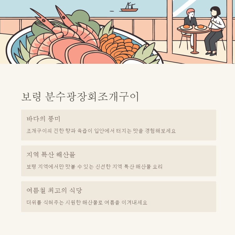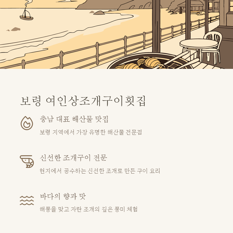 | 보령 조개구이 맛집 | 대표 메뉴 | 특징 |