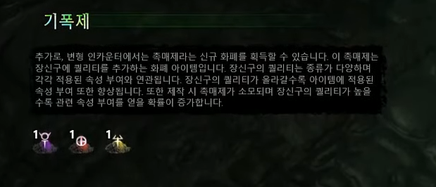 부여의 기폭제 : 반지/목걸이/허리띠와 같은 악세사리에 부여된 시전자 향상부여를 향상시키는 퀄리티를 추가 해줌